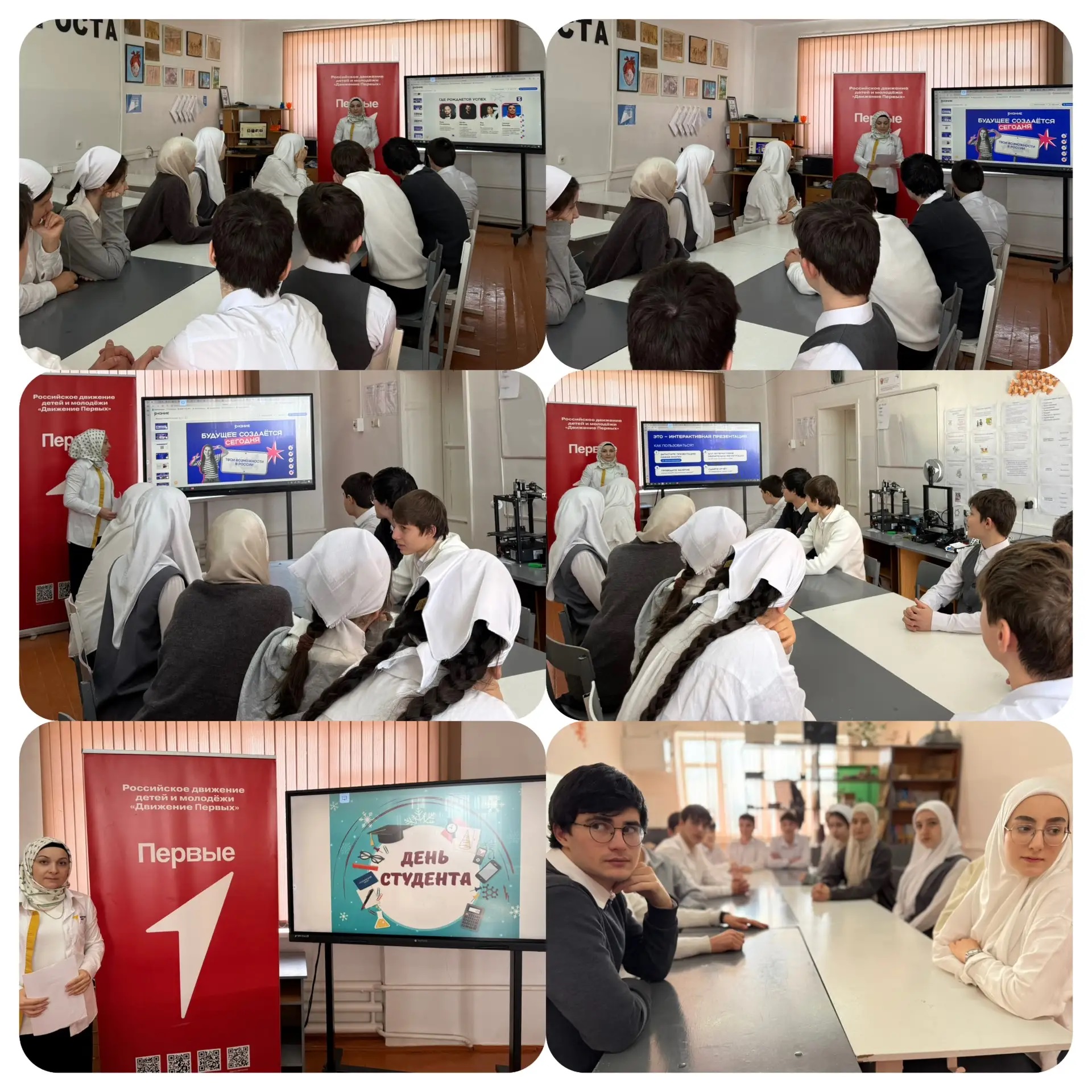 22.01.202625 января День российского студенчества Советник директора по воспитанию и взаимодействию с детскими общественными объединениями Куркаева Ж.С. для 9-10-х классов, провела увлекательную и вдохновляющую лекцию от Российского общества «Знание»на тему «Будущее создаётся сегодня: твои возможности в России». Ребята узнали о том, какие перспективы открываются для молодого поколения, как можно реализовать свои таланты и идеи уже сейчас, и почему важно верить в себя и свою страну. #Росдетцентр #НавигаторыДетства #ДеньСтудентаНД