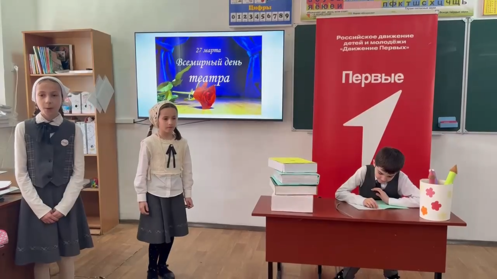 27.03.202627 марта Всемирный день театра Всероссийская акция «В мире театра». В нашей школе обучающиеся 4 «А»класса, активисты первичного отделения Движения Первых приняли участие в акции «Театр за 5 минут», приуроченной к Всемирному дню театра. #ВМиреТеатра #НавигаторыДетства #Росдетцентр #ДвижениеПервых