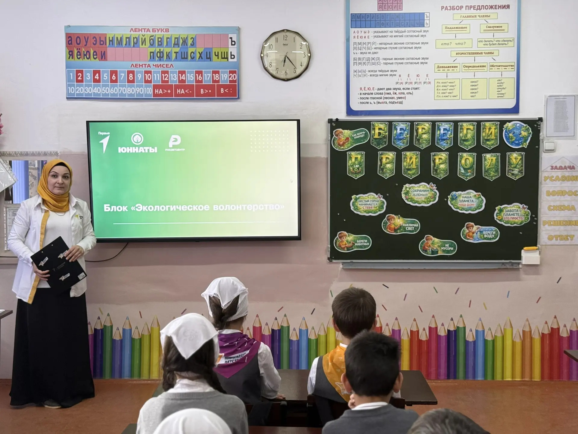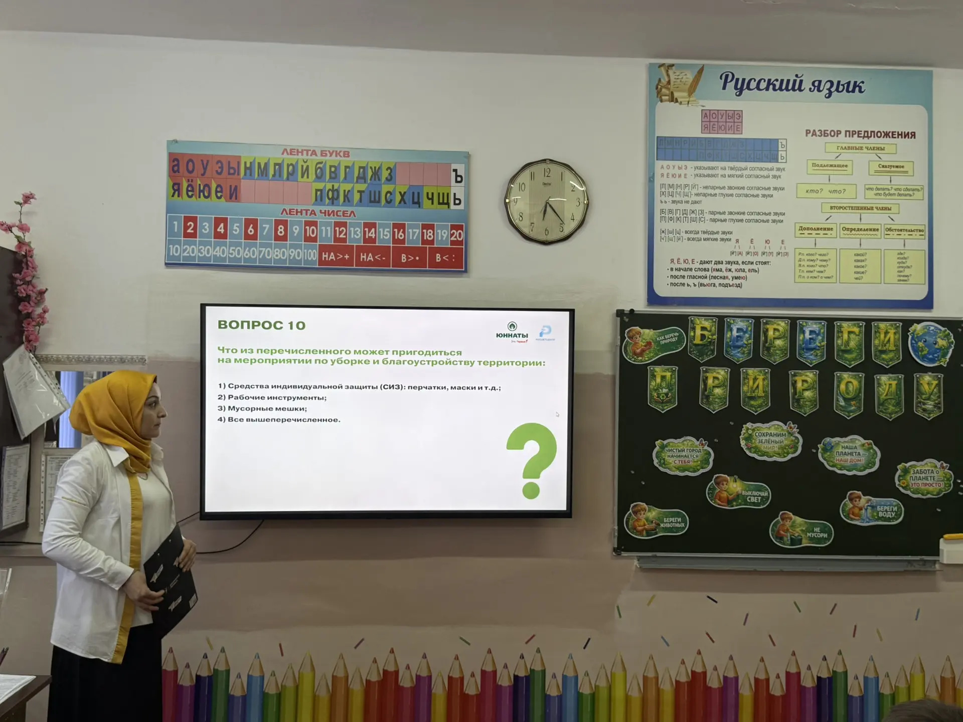 24.04.2026Викторина ко Всемирному дню Земли: знания и вдохновение! 22 апреля, в рамках празднования Всемирного дня Земли, в нашей школе прошла тематическая викторина для учащихся 2-го класса. Ребята с энтузиазмом отвечали на вопросы о природе, животном и растительном мире, экологических проблемах и способах их решения. В ходе игры школьники: проверили свои знания о заповедниках и редких видах; отгадывали загадки о природных явлениях; обсуждали, как каждый может помочь сохранить нашу планету. Викторина не только расширила кругозор ребят, но и помогла сформировать бережное отношение к окружающей среде. #ЗеленаяВесна #НавигаторыДетства #Росдетцентр #ДвижениеПервых