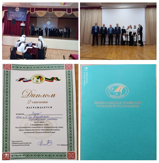 заняли 2 место в межрайонном этапе Республиканской олимпиады по избирательному праву среди старшеклассников общеобразовательных организаций Чеченской Республики.