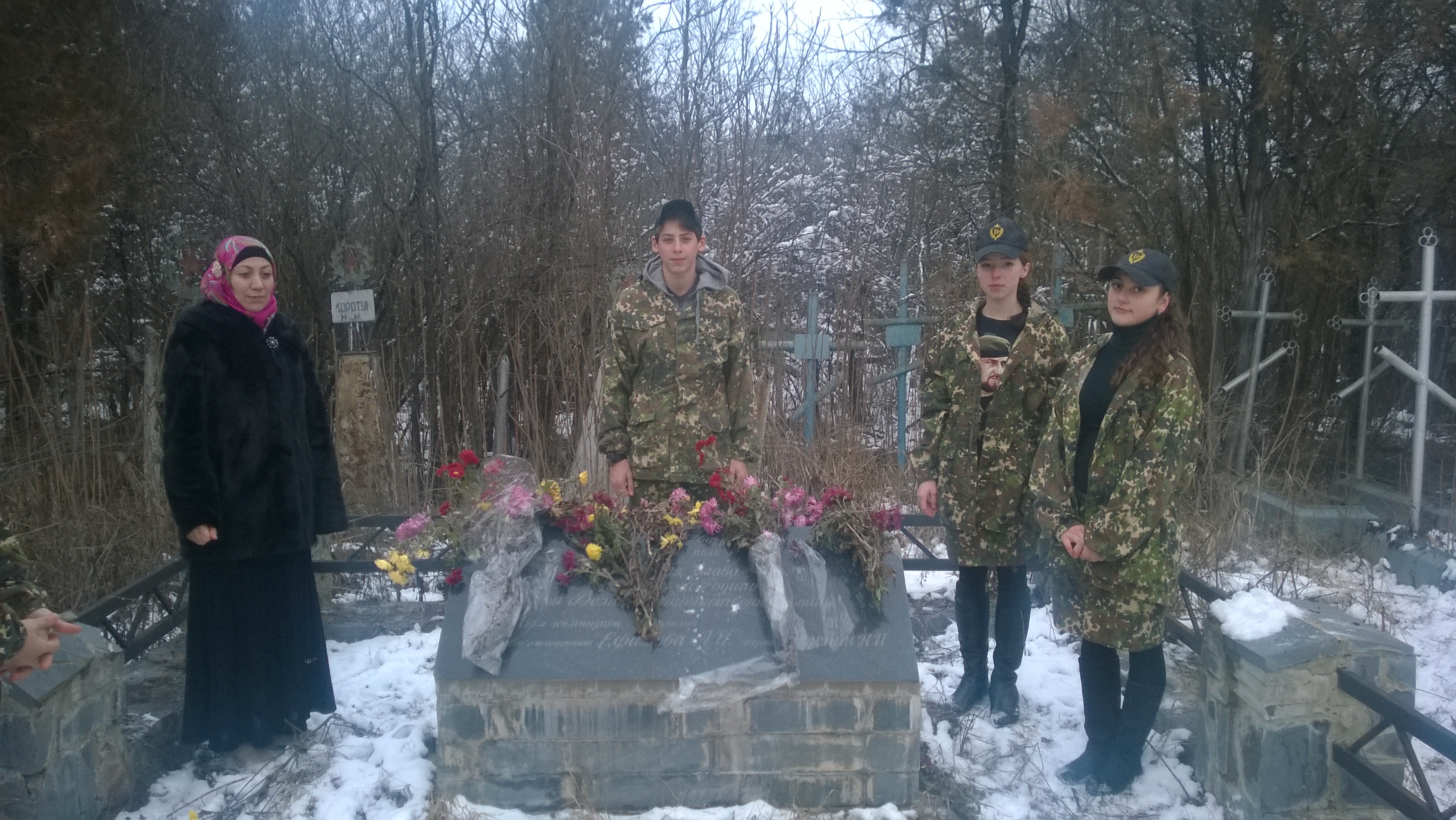Возложение цветов к памятнику 46-го Таманского Гвардейского авиационного женского полка, где похоронены зам. командира ст. лейтенант Ефимова А. Г. рядовой Лелепин Н. И., расположенному в ст. Ассиновская.