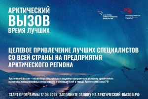 Стартовал прием заявок на участие в самой масштабной федеральной программе по привлечению высококвалифицированных кадров в инновационные проекты арктической зоны – «Арктический вызов».