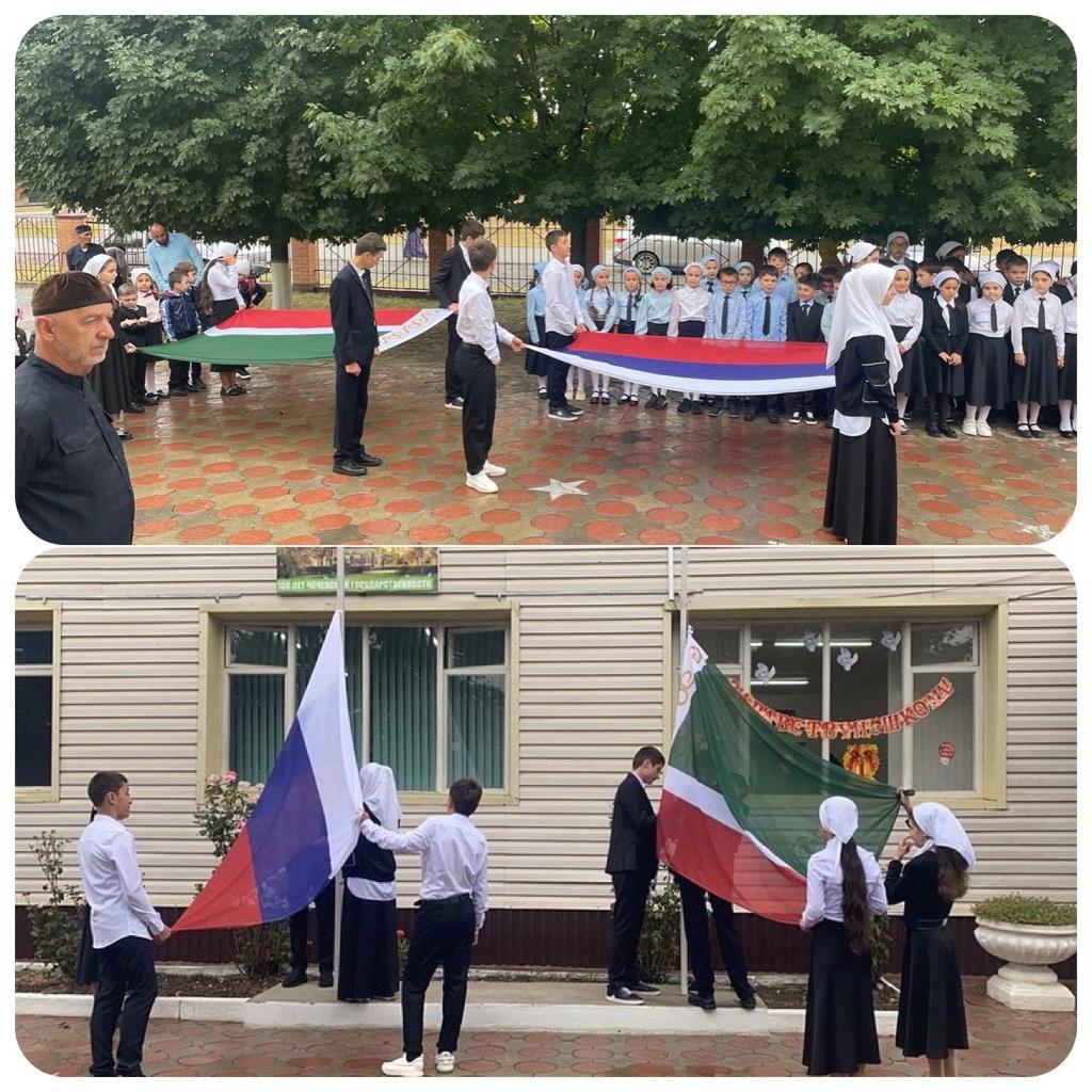 В МБОУ «СОШ №3 ст.Ассиновская» прошла торжественная церемония поднятия флагов Российской Федерации и Чеченской Республики.