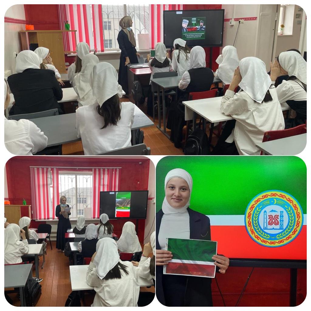 06.09.2022В целях решения задач гражданского,патриотического воспитания учащихся ,формирования у них гордости за достижения своей республики в 8 б классе учитель английского языка Хайхароева М.Г. провела классный час ко Дню Республики.