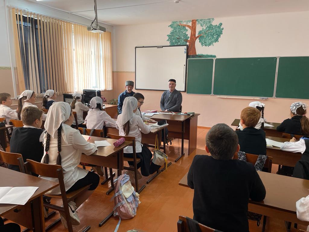 17 ноября 2022 года в школе прошла встреча с замами по ДНВ Кукаевым Ибрагимом, Терхоевым М.Ю. где они провели беседу с учащимися 7 - 11х классов на тему « Терроризм-война против беззащитных».