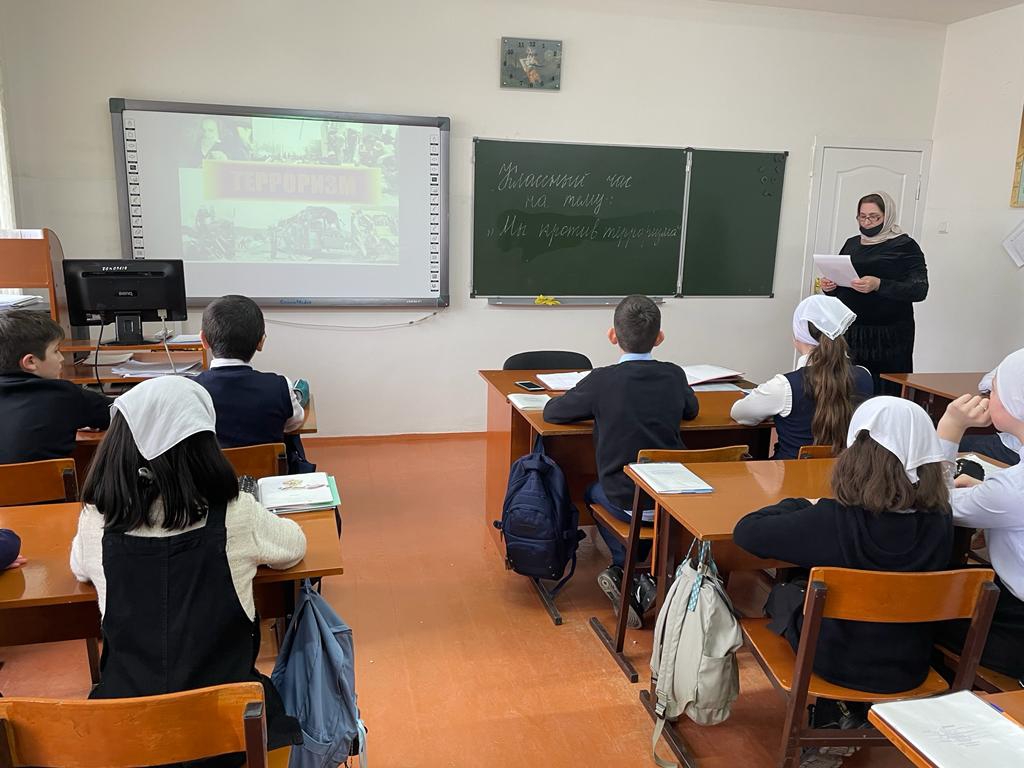 21 октября 2022г в 6 «б»классе классный руководитель Хаюрина Б.О. провела классный час «Мы против терроризма».