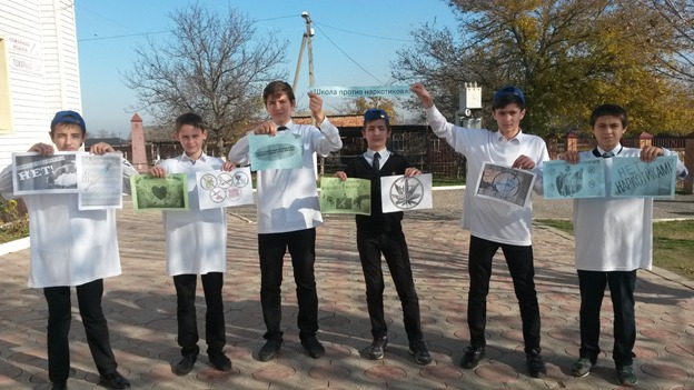 Акция сопровождалась выставкой плакатов «Скажем «Нет!» наркотикам:», «Наркотики пожизненная ломка, не ломай себе жизнь», «Мы против наркотиков»