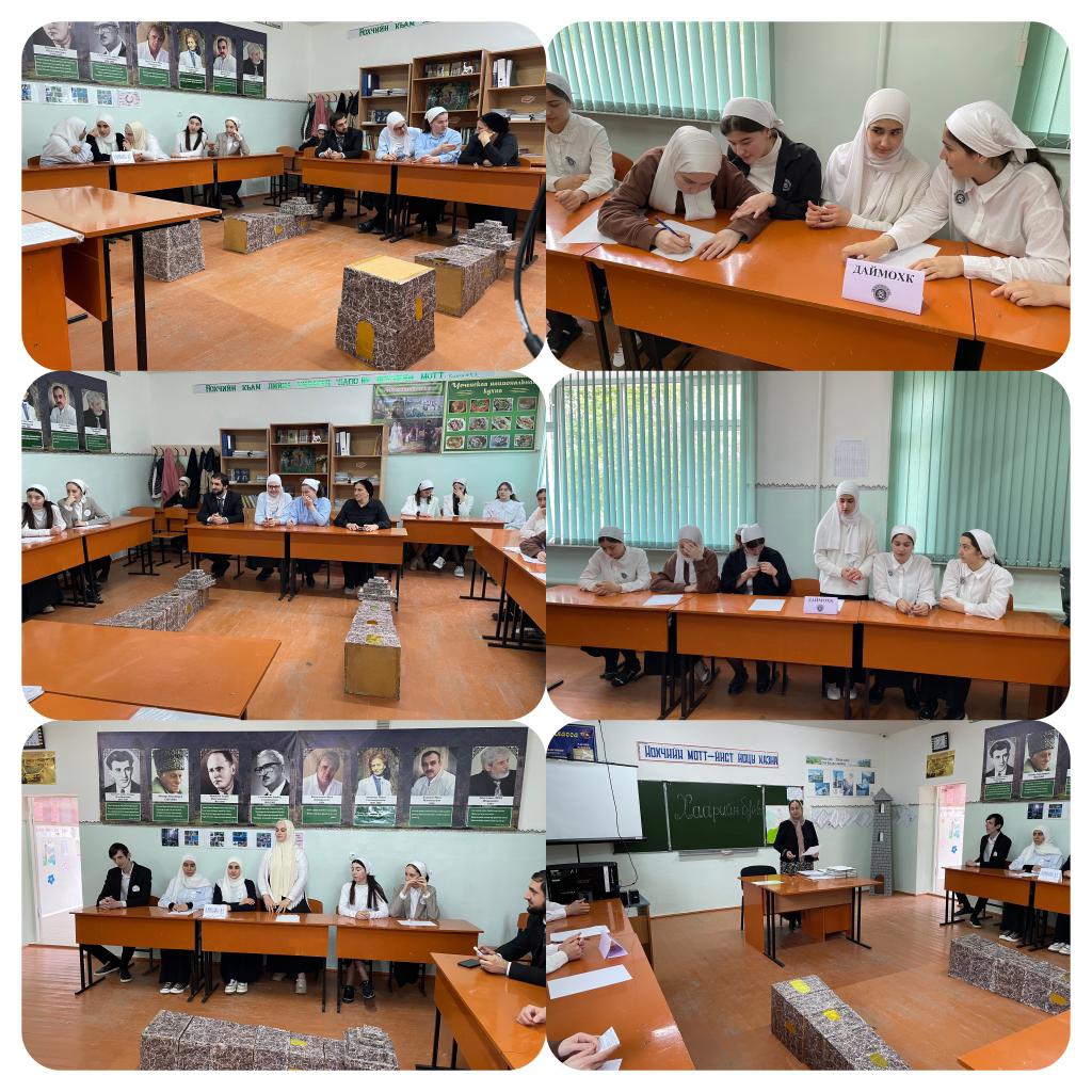 25.04.2023 года в МБОУ "СОШ 3" проведено мероприятие "Хаарийн б1ов" в рамках декады чеченского языка и литературы. Участники - обучающиеся 10Б класса( команда " Даймохк") и обучающиеся 11 класса ( команда " Ламанан аз"). Учитель чеченского языка и литературы, Яхъяевв Н. Х., подготовила интересные вопросы и задания, поэтому встреча прошла на хорошем уровне. Итогом встречи стала победа команды " Ламанан аз"