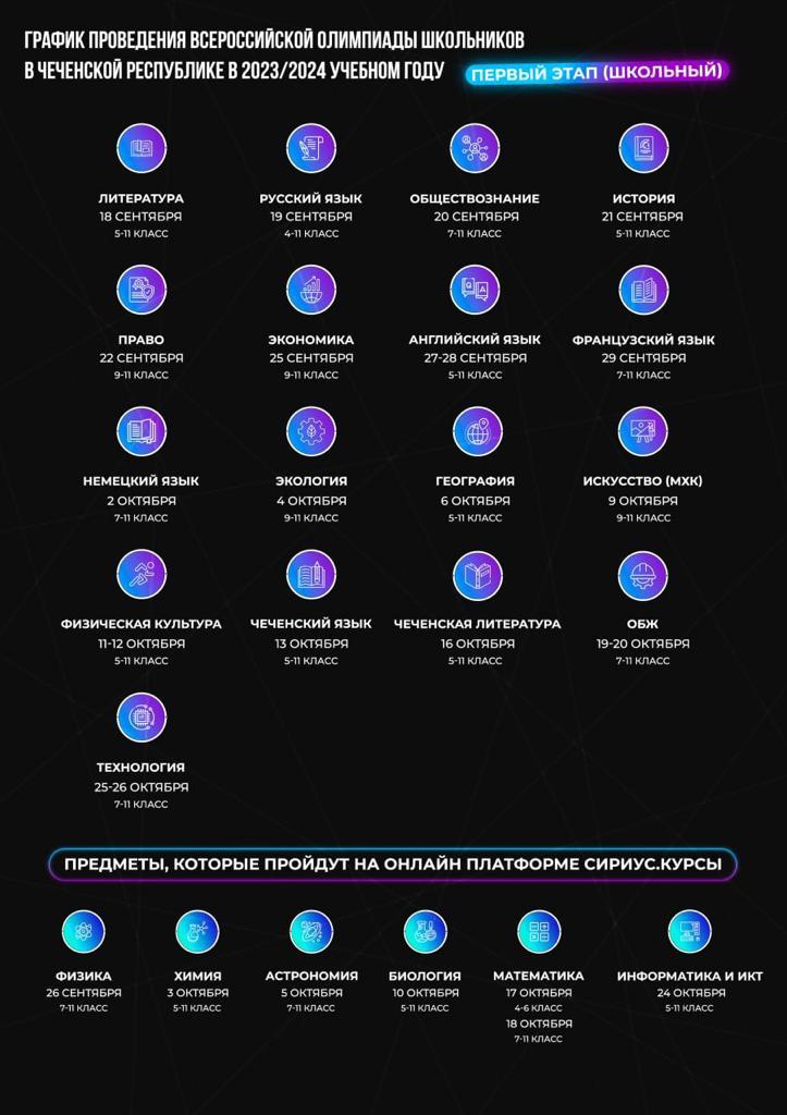 График проведения школьного этапа Всероссийской олимпиады школьников в 2023/24 учебном году 🥳