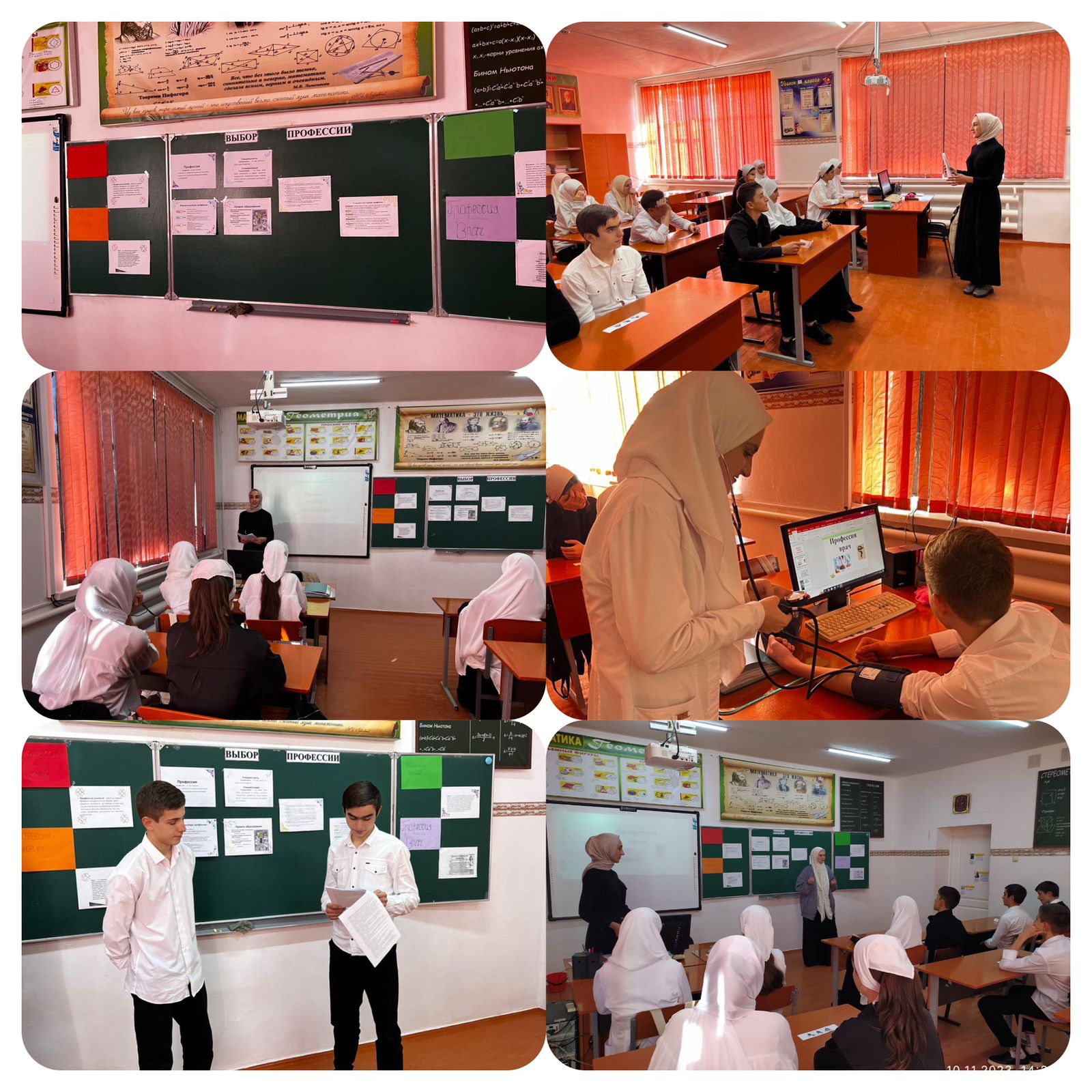 « Выбор профессии — это очень важное событие в жизни каждого человека. Но какую бы профессию ни выбрали, всегда пригодятся знания, полученные в школе. Поэтому уже сейчас нужно определить область своих интересов, больше читать, набираться опыта и знаний. Для этого нужно пробовать себя в самых разных областях. Как хорошо заметил один мудрец «Чтобы не ошибаться, нужно иметь опыт. Чтобы иметь опыт, нужно ошибаться», высказала свое мнение о мероприятии , заместитель директора по В/Р Мочаева Марет Яхьяевна