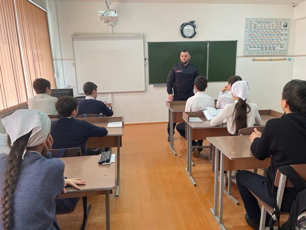 19 октября инспектор ПДН лейтенант полиции ОМВД по Серноводскому району Табыркоев А.М. провел в школе профилактическую беседу на тему «Противодействие терроризму и экстремизму, профилактика правонарушений несовершеннолетними»