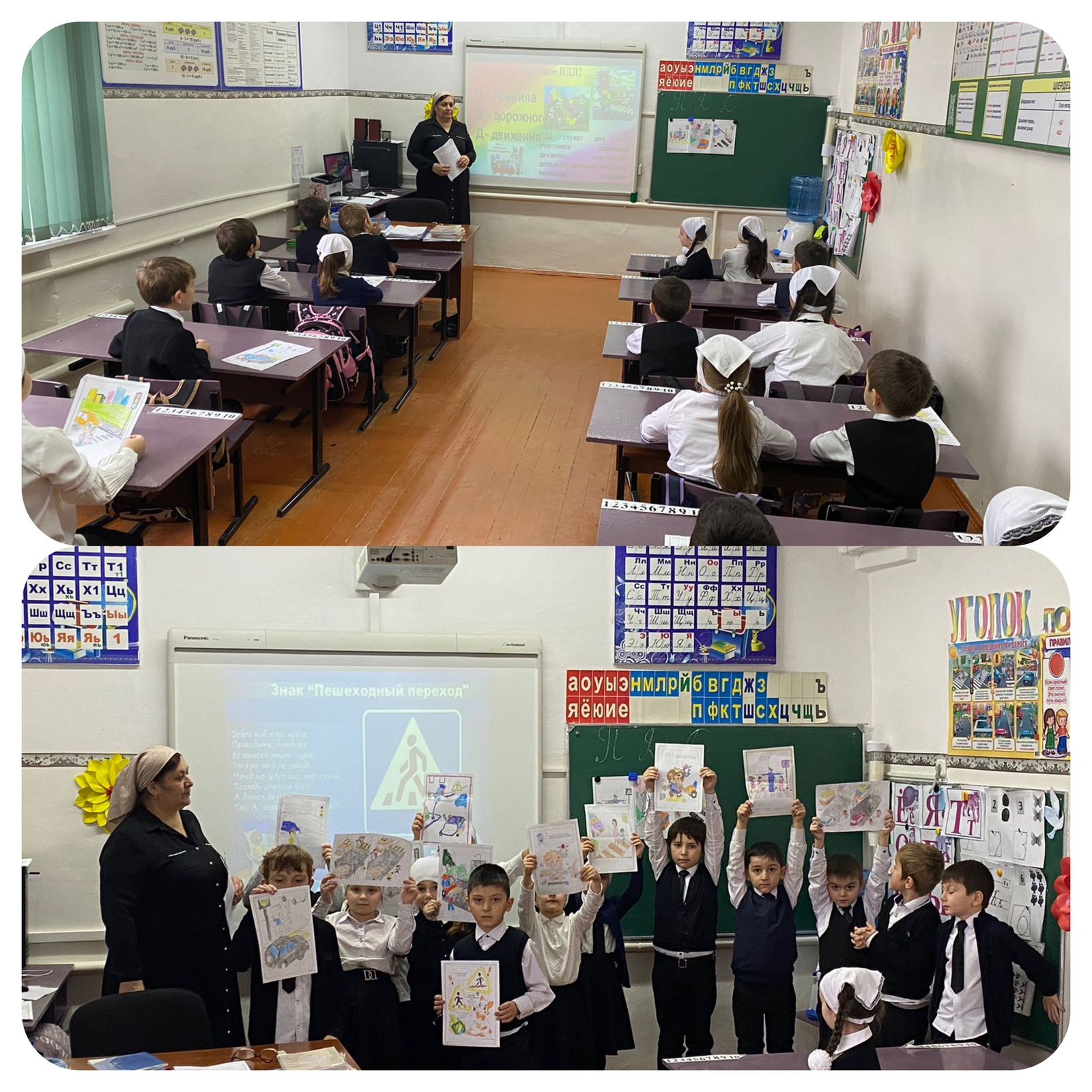 03 ноября для учащихся первых классов был подготовлен и проведён праздник «Пешеходы и пешеходный переход» учителем начальных классов Мишиевой Айной Исраиловой главной целью которого, стало расширение представлений учащихся о правилах поведения на дороге, о значении дорожных знаков и сигналов светофора, развитие наблюдательности и внимания, воспитание культурного пешехода. Праздник прошёл в игровой и познавательной форме. Ребята отряда ЮИД ответственно отнеслись к подготовке и приняли активное участие в празднике. Пришли на праздник Зебра и Лошадка . Они рассказывали стихи, , исполняли песни о правилах дорожного движения.