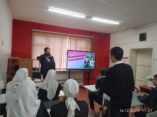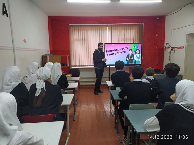 Обучающиеся узнали о потенциальных рисках при использовании Интернета, путях защиты от сетевых угроз, о проблеме интернет-зависимости, о правилах поведения в социальных сетях. Ислам Алиевич рассказал ребятам, что Интернет вызывает привыкание, сравнимое с героиновой наркоманией, причем в отличие от других форм болезненных зависимостей, интернет – аддикции подвержены в первую очередь женщины и дети.