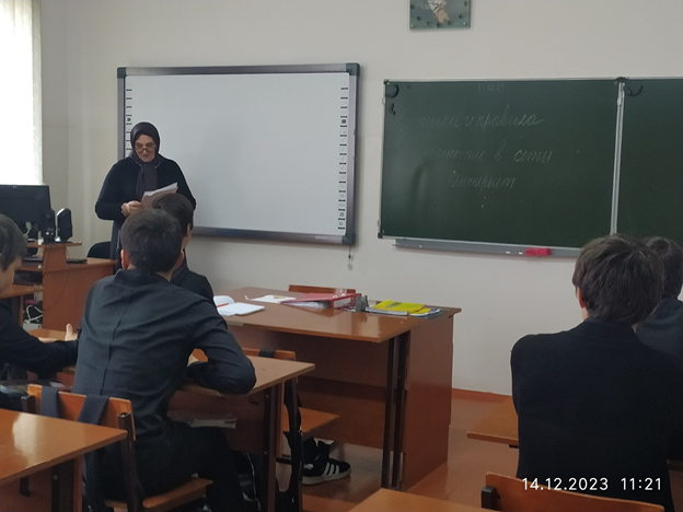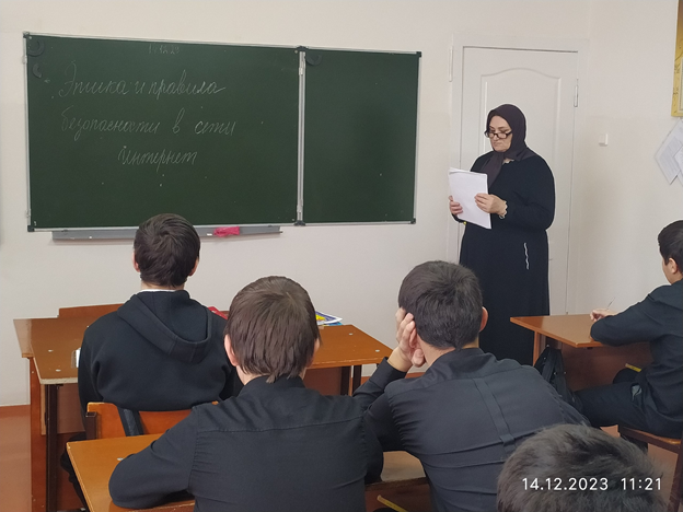 07.11.20237 ноября в 8 «а» классе прошла беседа на тему: «Этика и правила безопасности в Сети интернет». ( учитель ОБЖ-_Хаюрина Бирланд Олеговна)