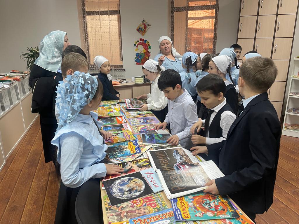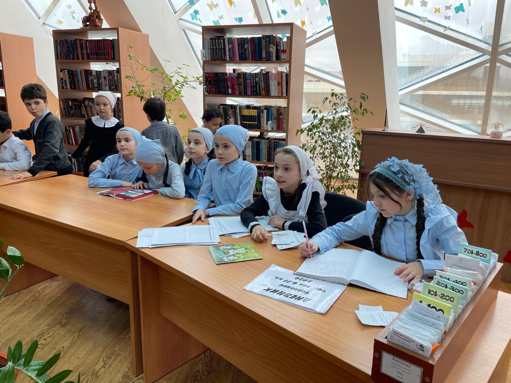 В рамках реализации федерального проекта «Культура для школьников» учащиеся начальных классов вместе с классным руководителем Ферзаули Жарадат Ахмедовной и библиотекарем Кангиевой Марет Мусаевной посетили Национальную библиотеку имени А. Айдамирова г. Грозного.