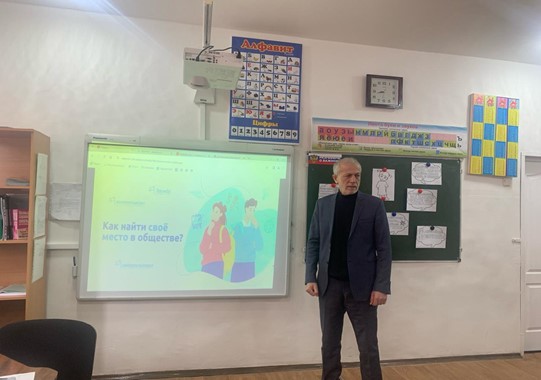 4 марта 2024 года тема занятия: «Как найти своё место в обществе». Юнус Махмудович раскрыл тему занятия, рассказал, что каждый человек ищет своё место в мире, где он может быть и самим собой, и где он сможет быть нужным другим. Это не простая задача. Ребята узнали, что это значит –выбрать именно свою дорогу, найти свой путь среди множества других? Что помогает и что мешает человеку делать выбор, определять своё место в обществе? Обучающиеся 8-9 классов обсудили модели движения к цели в поисках своего места в жизни.