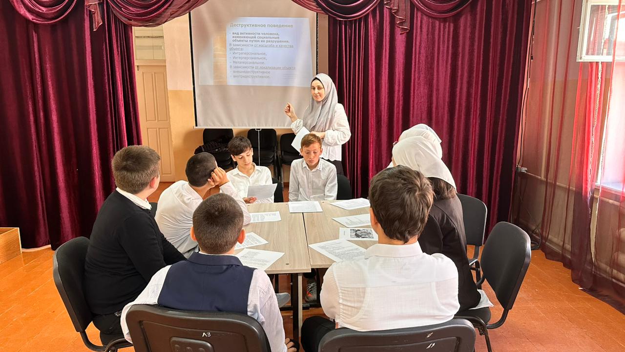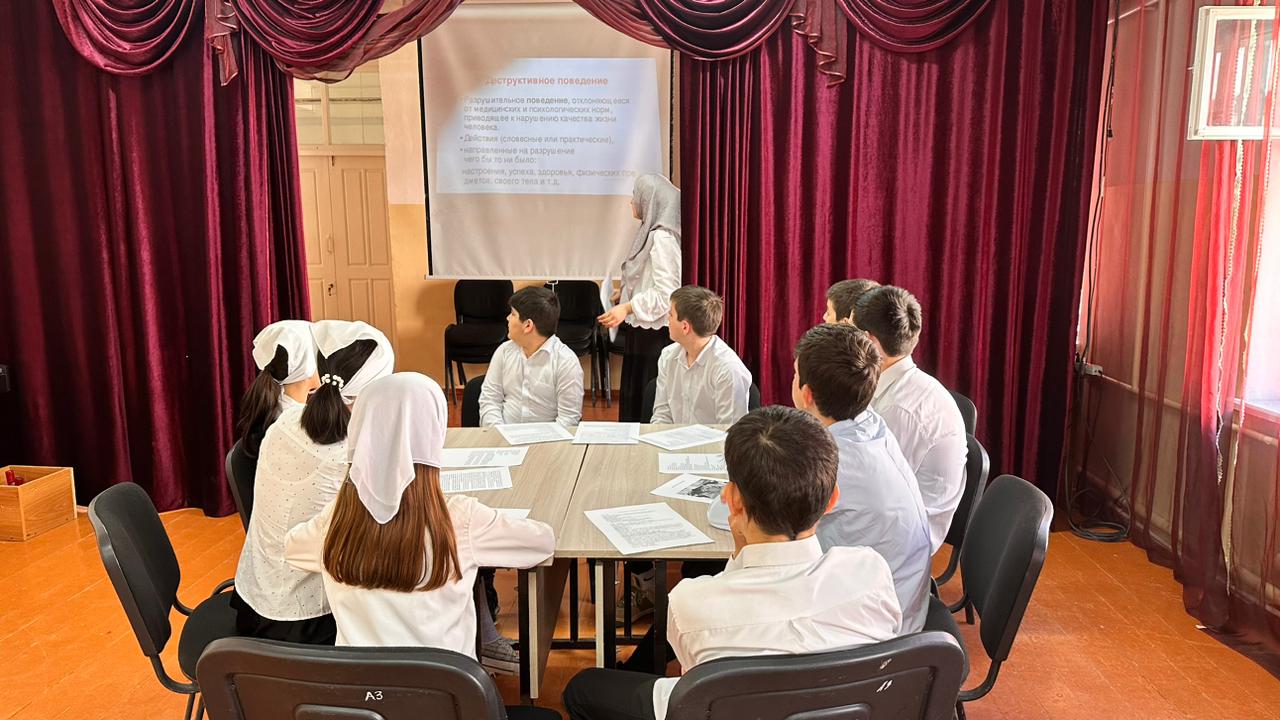Круглый стол деструктивной направленности с обучающимся 7-8 кл.на тему: « Детство без насилия и жестокости» провела педагог-психолог Тахингова М.С.