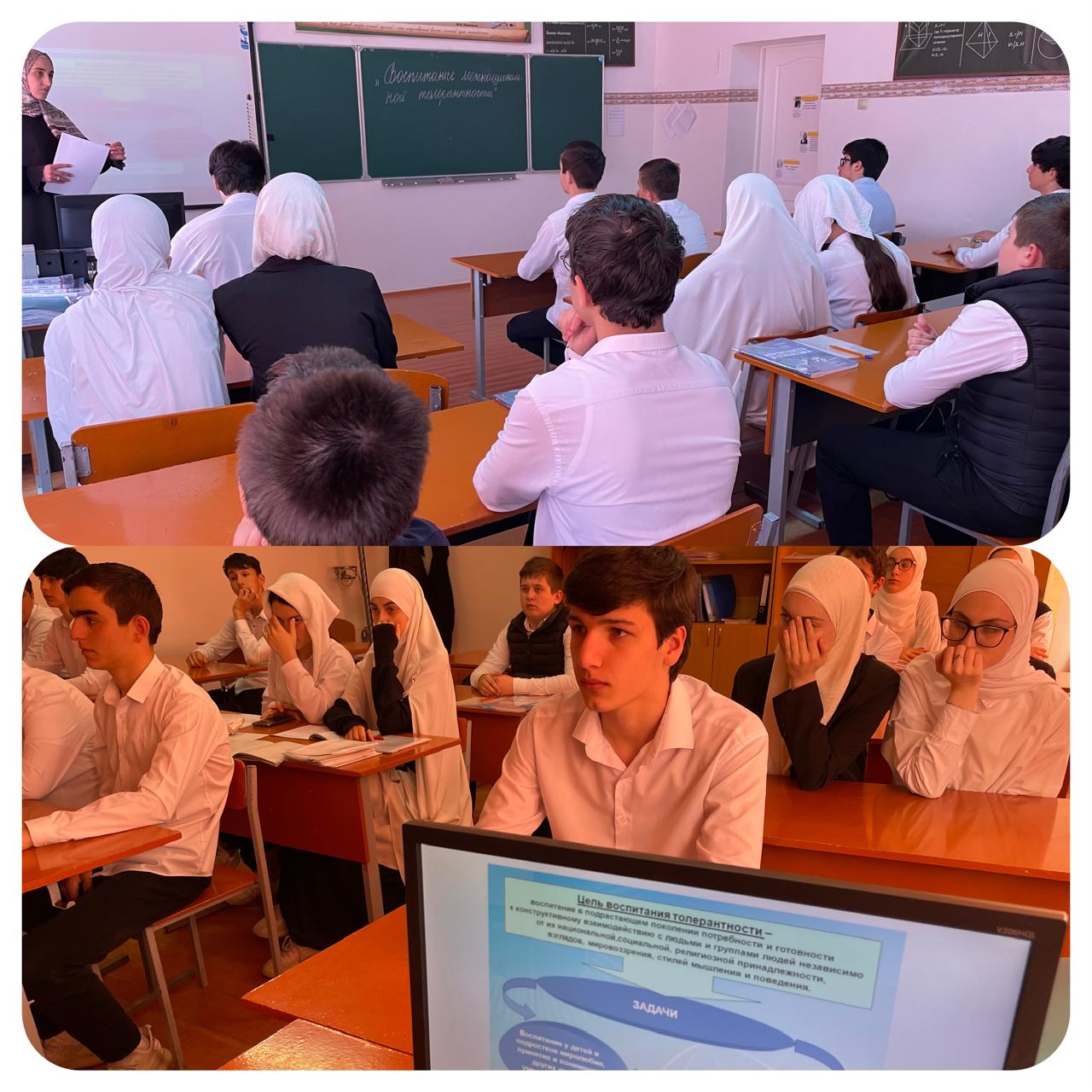 9 февраля для учащихся был проведен урок дружбы «Воспитание межнациональной толерантности». Проведение этого мероприятия вызвано необходимостью поддержания стабильной обстановки в сфере межнациональных отношений среди молодых людей. Педагог познакомила молодежь с понятием «толерантность», принципами и чертами толерантной личности, прозвучали стихи поэтов дружбе народов, рассказала о национальном и религиозном составе России и о многовековом совместном проживании на территории страны традиционных конфессий, а в завершении предостерегла молодых людей от разного рода религиозных и национальных течений, не имеющих проверенной и утвержденной государством регистрации.