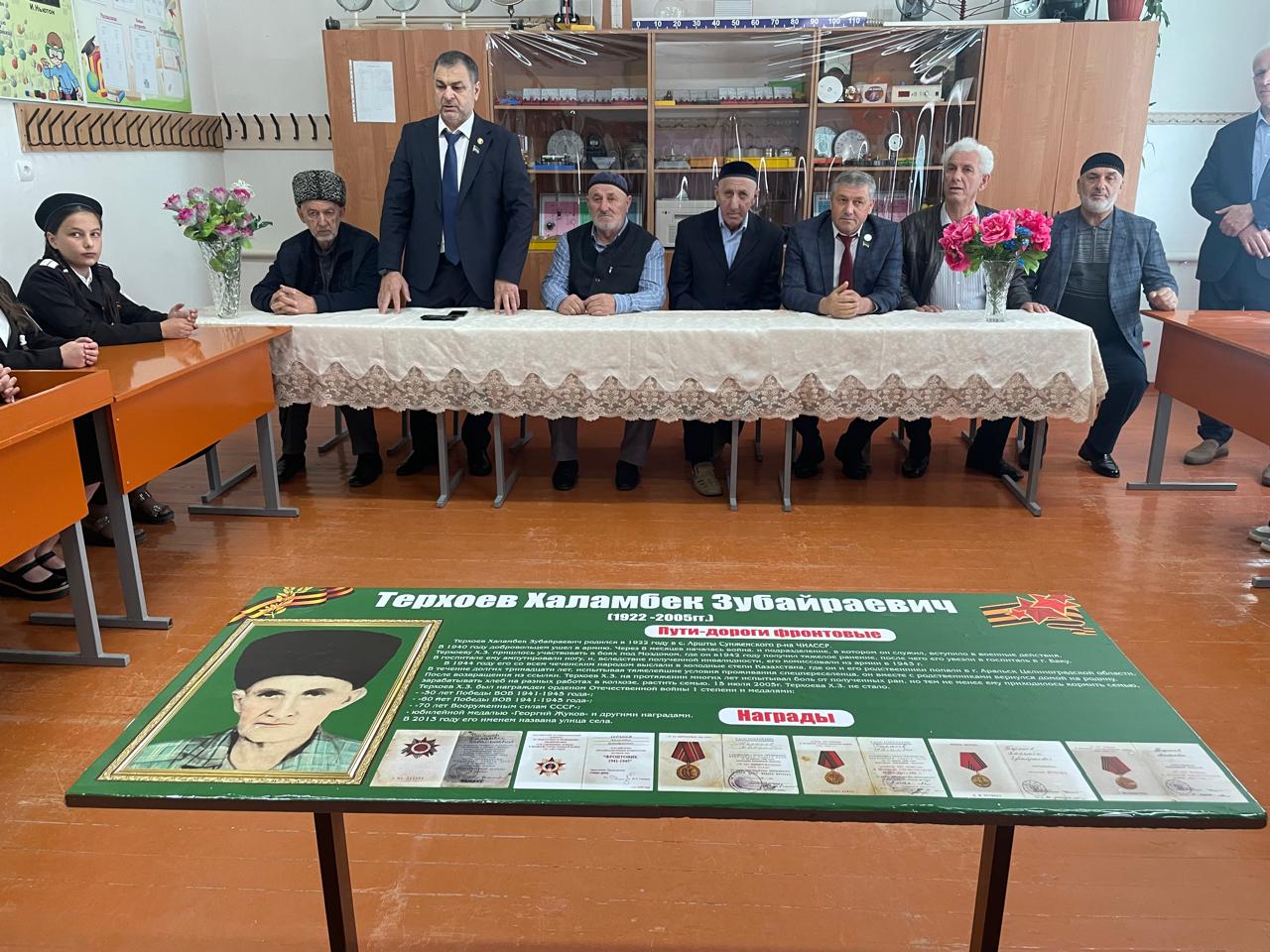 8 мая 2024 года в нашей школе прошла церемония открытия «Парты Героя», посвященная участнику Великой Отечественной войны, односельчанину Терхоеву Халамбеку Зубайраевичу.