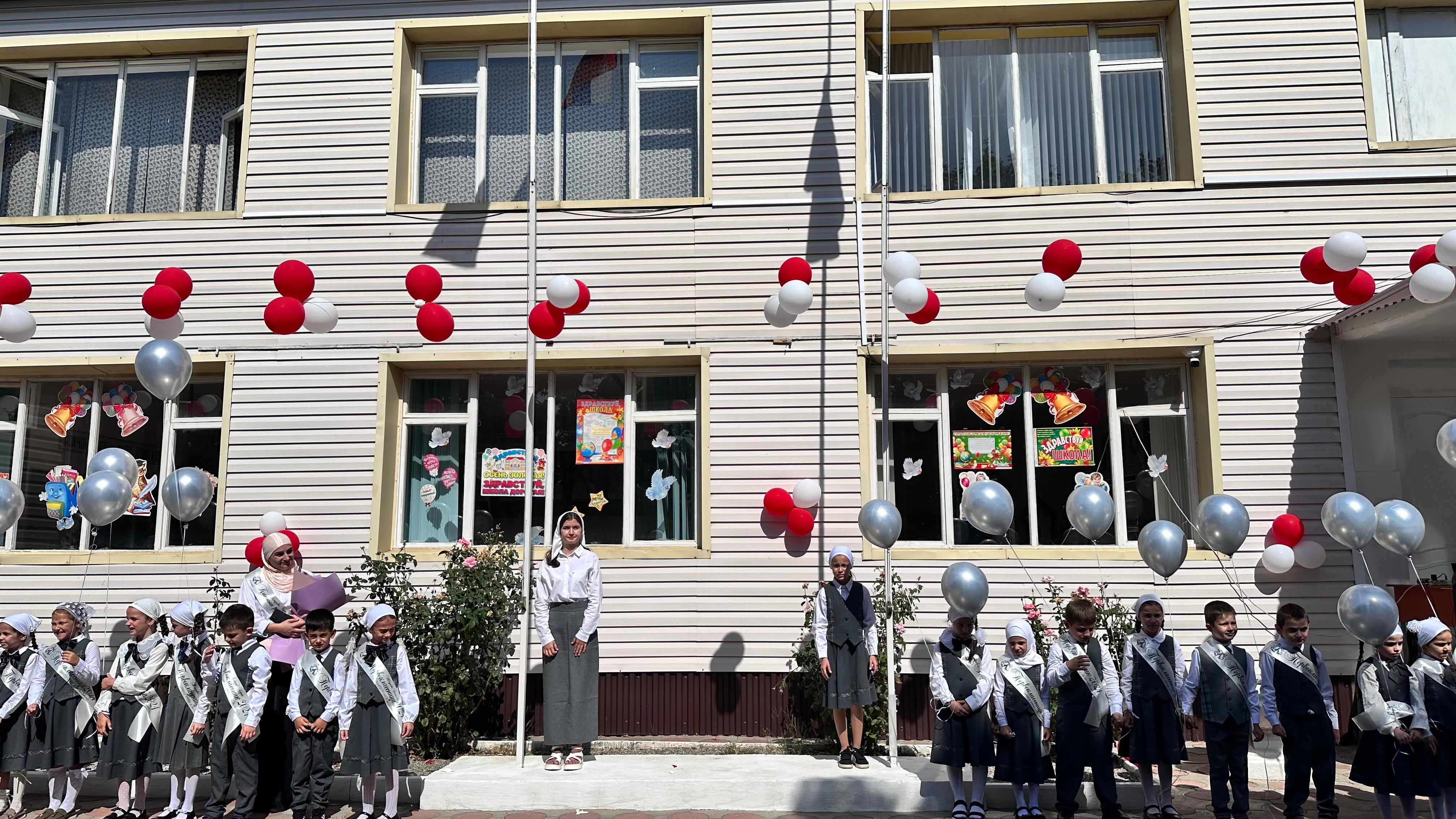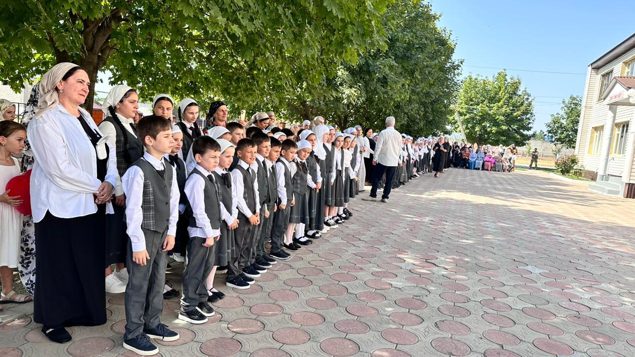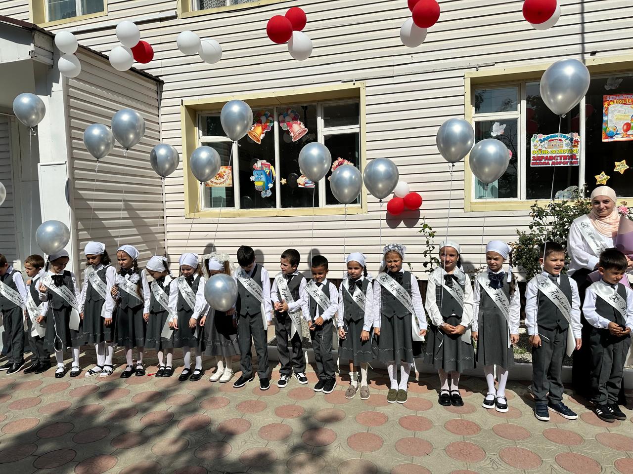 В этот день в нашей школе царила праздничная атмосфера.Нарядными и взволнованными были дети, родители , учителя.Учителя начальных классов Хациева Зина Хасанова и Бакаева Хава Руслановна вывели первоклассников из школы и представили участникам торжественного мероприятия.Директор школы и гости поздравили ребят с началом нового учебного года и пожелали успехов в учебе ,мирного неба над головой. Прозвенел звонок и возвестил о начале очередного учебного года.Впереди много работы на пути к новым достижениям,победам.С Днём знаний!