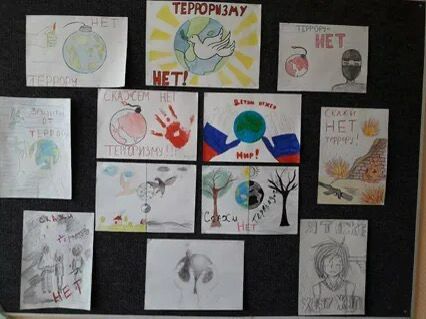 03.09.2024В школе 03.09.24г прошел конкурс рисунков «Терроризму нет», посвященный Дню солидарности в борьбе с терроризмом