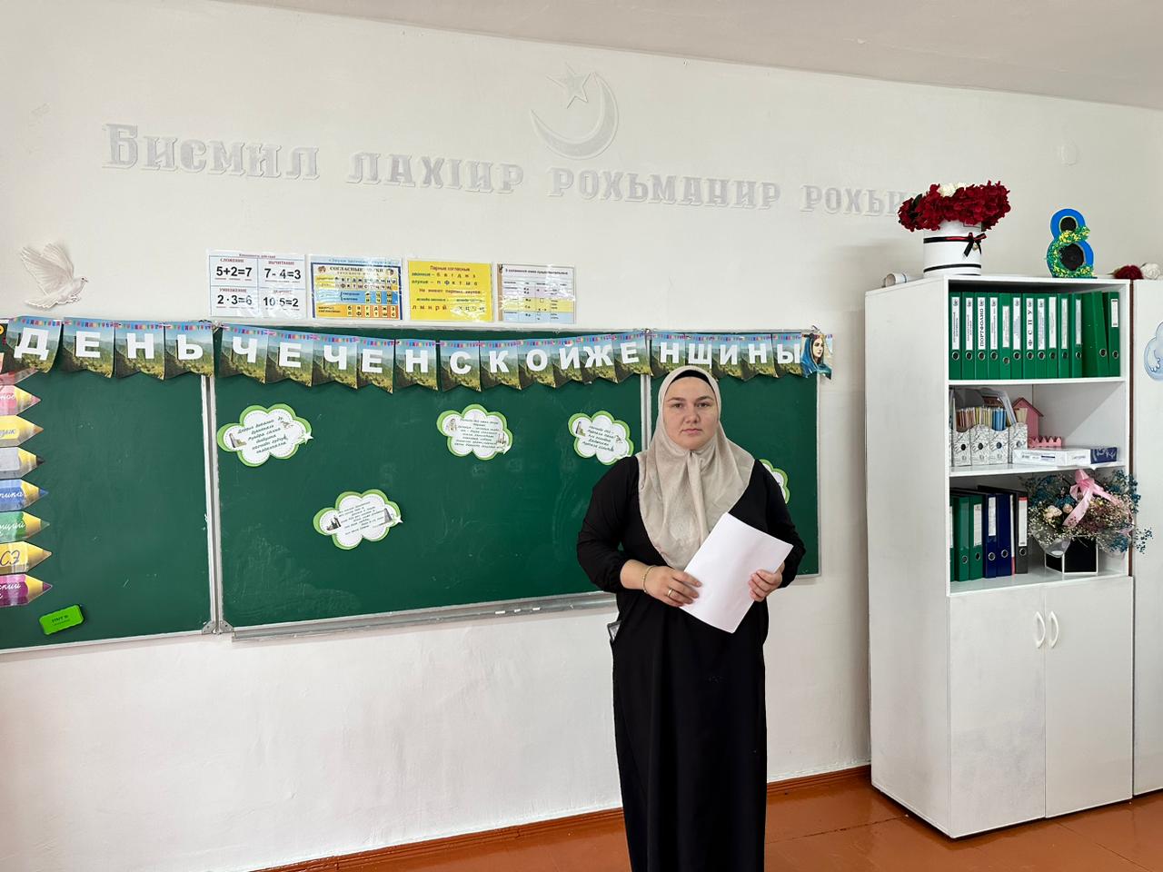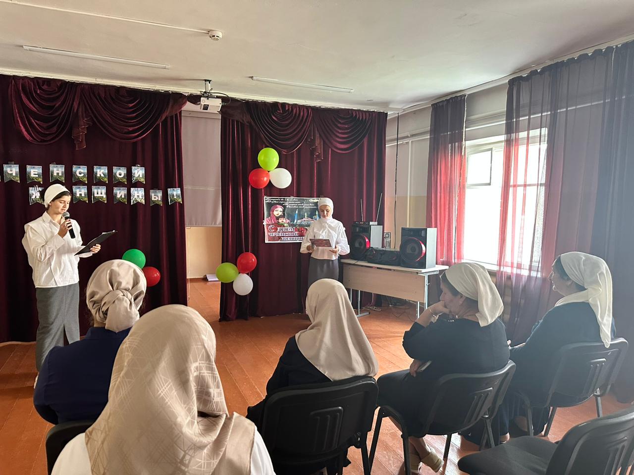 13.09.2024Цель мероприятия: показать роль женщины в жизни чеченского общества, познакомить с историческими личностями, ознакомить с родом деятельности чеченских женщин и, конечно же, развить творческие способности учащихся, воспитать в них чувство патриотизма и гордости за свой народ и свою историю.