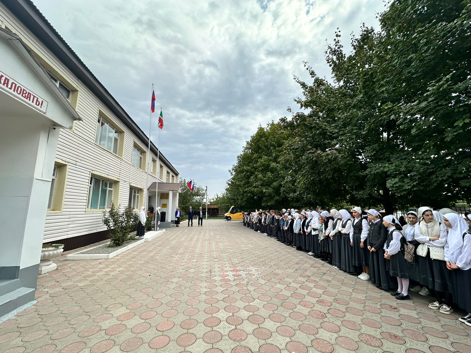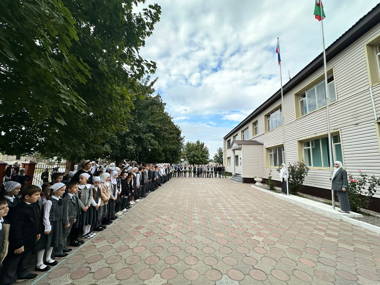 В МБОУ "СОШ №3 ст Ассиновская" прошла еженедельная торжественная церемония поднятия Государственных флагов Российской Федерации и Чеченской Республики.