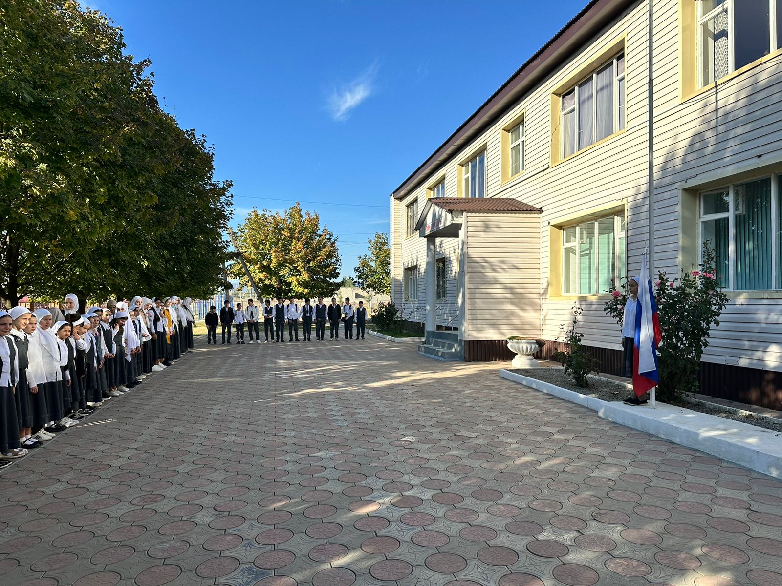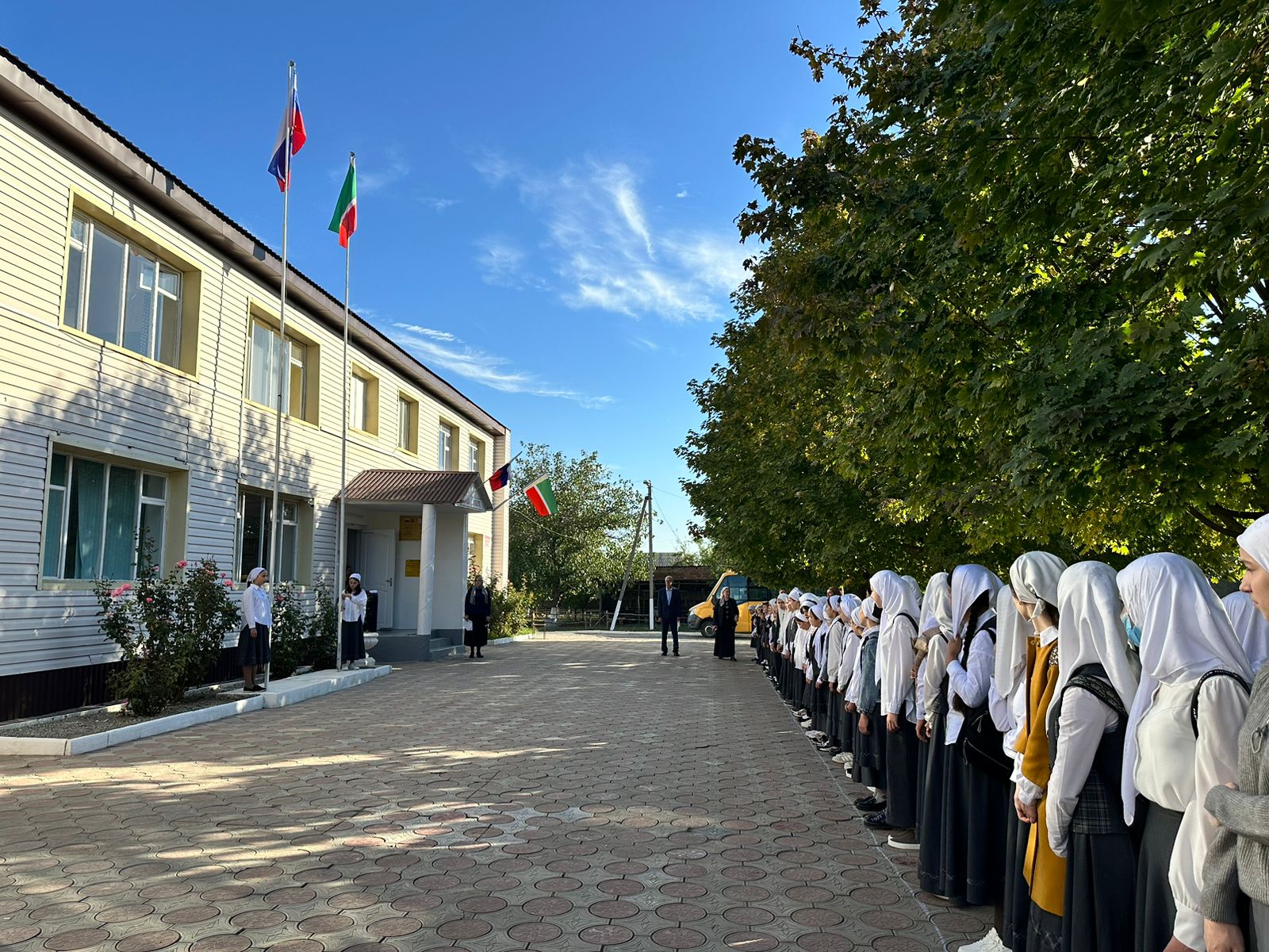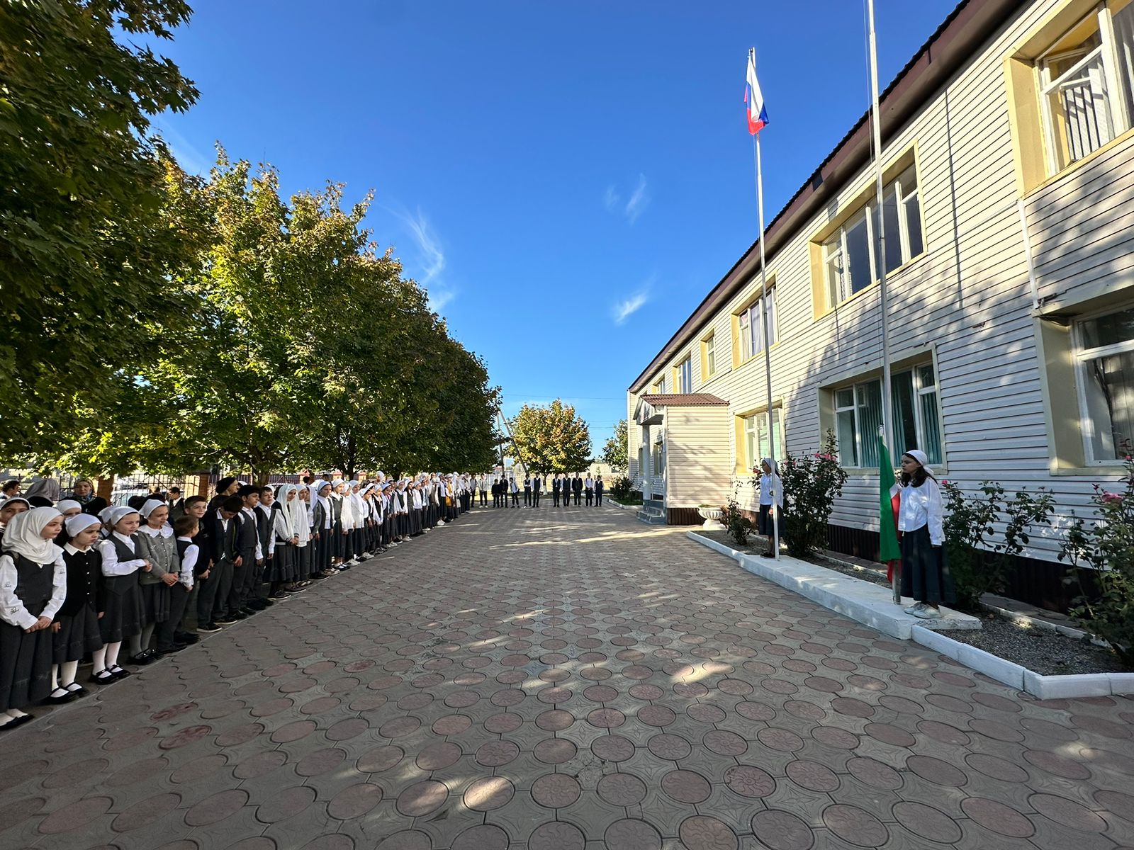 Церемония поднятия флагов РФ и ЧР.