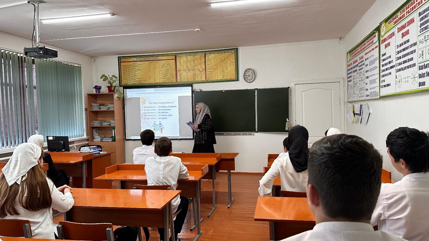 15.11.202415 ноября в 9 «А» классе проходило мероприятие на тему «Толерантность – это язык добрых дел и слов», на котором наши ученики узнали, что такое добро, какого человека называют добрым, каким человека делает доброта. Доброту можно проявить в мир по-разному: сделать добрый поступок, улыбнуться доброй улыбкой, сказать доброе слово.