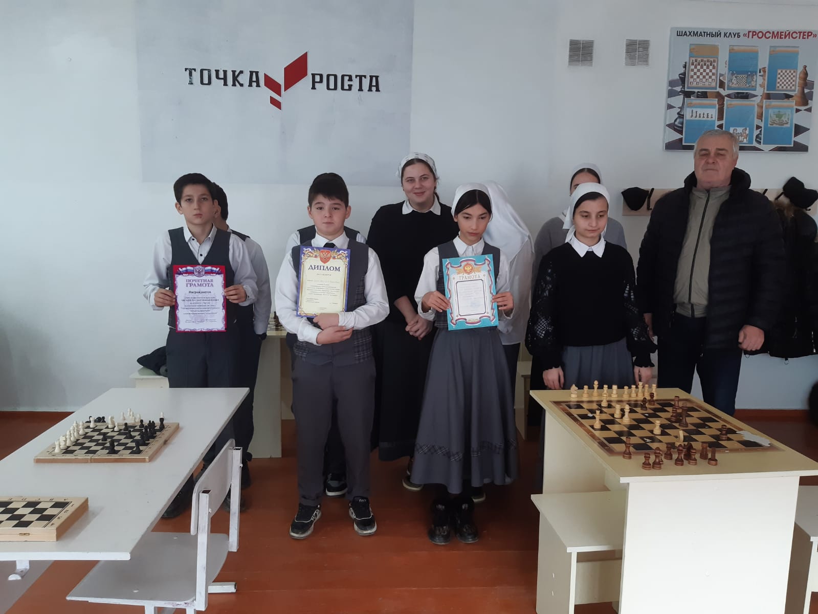 В школе прошел шахматный турнир, посвященный Дню Конституции Российской Федерации. В турнире приняли участие 16 обучающихся 6-8 классов.Игра состояла из двух этапов, по итогам которых лучшими стали обучающиеся:Махаури Б.(6 кл), Амриева И ( 8 кл),,Султанов А ( 7 кл),
