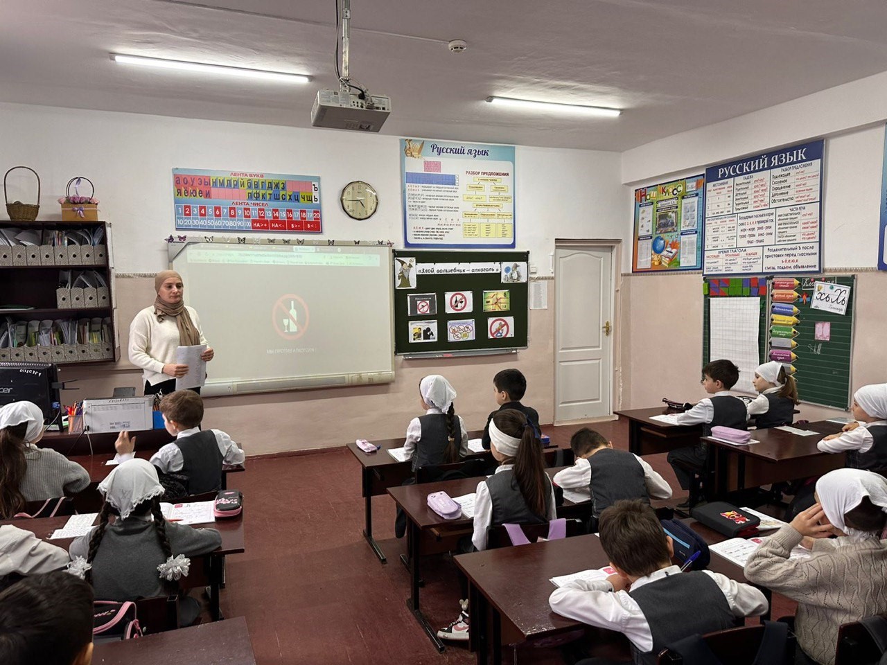 Классный руководитель Хациева З.Х. в ходе занятия провела беседу о вреде алкоголя., рассказала о влиянии алкоголя на организм детей, о том, какие изменения происходят в характере человека и о необратимых последствиях поражения головного мозга человека. Отметила, что злоупотребление алкоголем прямо или косвенно является одной из важнейших причин высокой смертности населения.