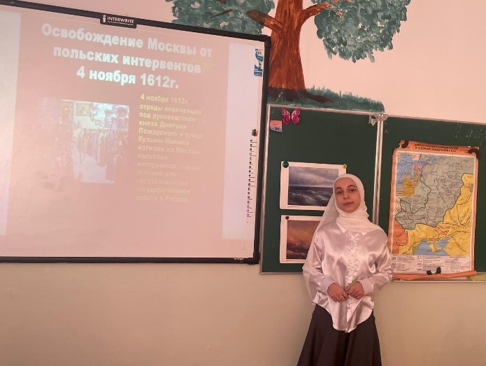 18.02.2025В рамках предметной декады истории , обществознания и ОРКСЭ 18.02.25 г, учитель истории и обществознания Махаури А.Р провела открытый урок на тему: «Освобождение Москвы 1612г»