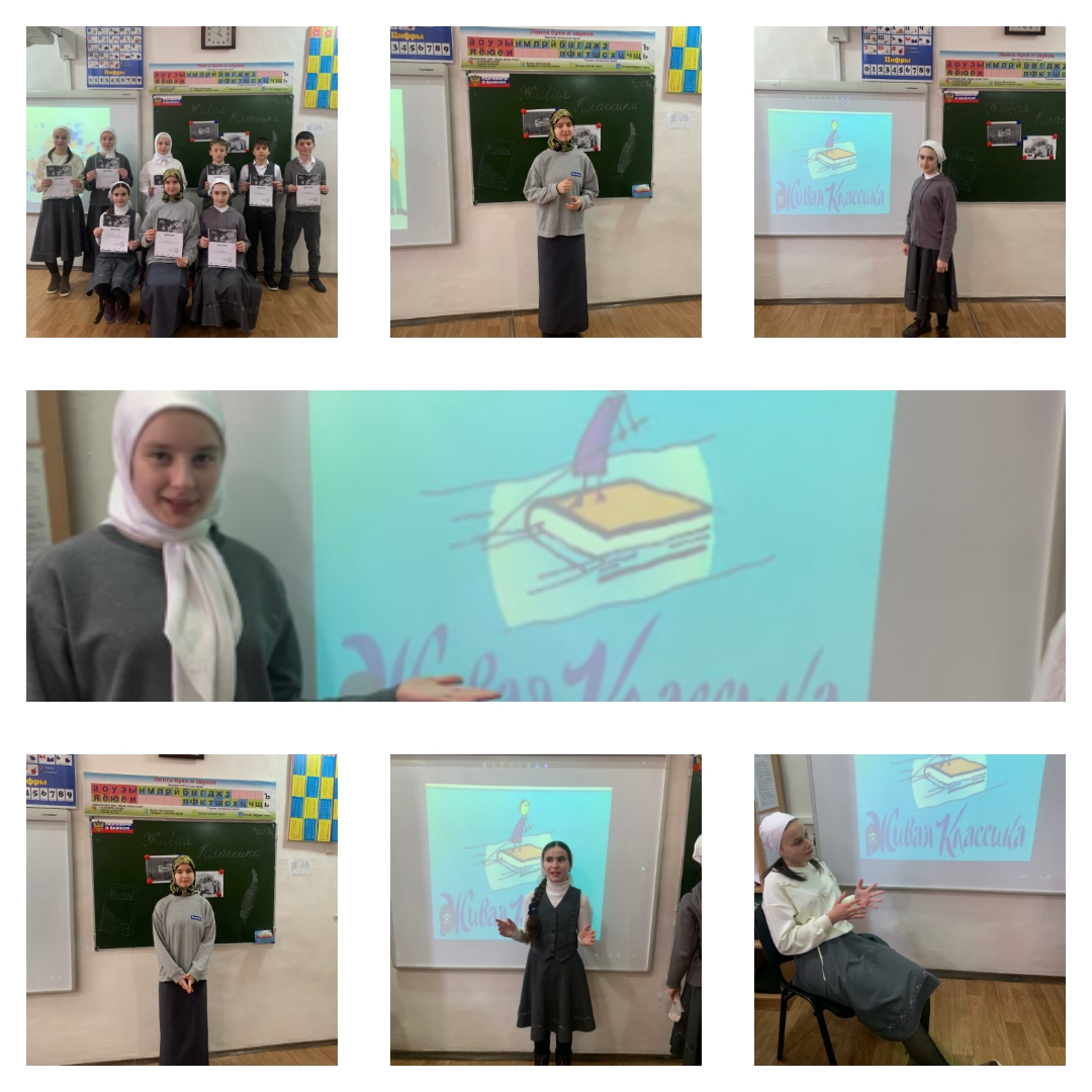 Особую активность проявили семиклассники. В их исполнении прозвучали отрывки из произведений русских писателей. Тронул до глубины души отрывок из произведения М.Шолохова «Судьба человека.» в исполнении обучающейся 7 класса Амриевой Софийи. Она стала победителем школьного этапа.