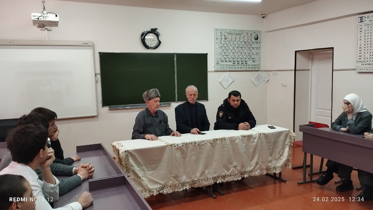 24.02.202524 февраля в школе была организована встреча обучающихся 6-9 классов с инспектором по делам несовершеннолетних Табыркоевым Адамом Махметовичем. На встрече присутствовали; директор школы –Конгиев Ю.М., зам директора по ДНВ –Терхоев М.Ю.