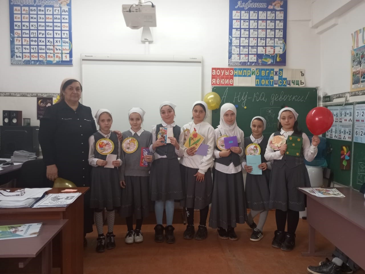 Девчонки порадовали нас своим артистизмом, смекалкой, находчивостью, доставили немало удовольствия присутствующим, подняли всем настроение. Улыбки и восхищение вызвало выступление группы поддержки мальчиков из 4»А» класса. С большой любовью каждая команда подготовила песню о маме. Жюри конкурса убедилось, что наши девочки умеют прекрасно петь, отвечать на самые каверзные вопросы и находить выход из любой ситуации. Благодаря своей артистичности, невероятной сообразительности, ответственности, с достойностью пройдя сквозь все препятствия, 1 место в конкурсе «А ну-ка, девочки!» заняла команда 4а класса «Бусинка», II место разделили команда 3 класса «Солнышко», команда 2 класса « Марс». И каким бы не был результат, мы еще раз убедились в том , что в нашей школе работают и учатся самые лучшие женщины и девочки! Праздник оставил самые приятные впечатления. С 03.03.по 07.03.2025г школе прошли классные часы на тему «8 марта-день особый» с приглашением мам и бабушек. Мальчики с классов подготовили приятные сюрпризы своим одноклассницам: нарисовали стенгазеты, надули шары, украсили классы, подготовили занимательные конкурсы для девочек, рассказывали об истории появления праздника, читали выразительно подготовленные стихотворения!