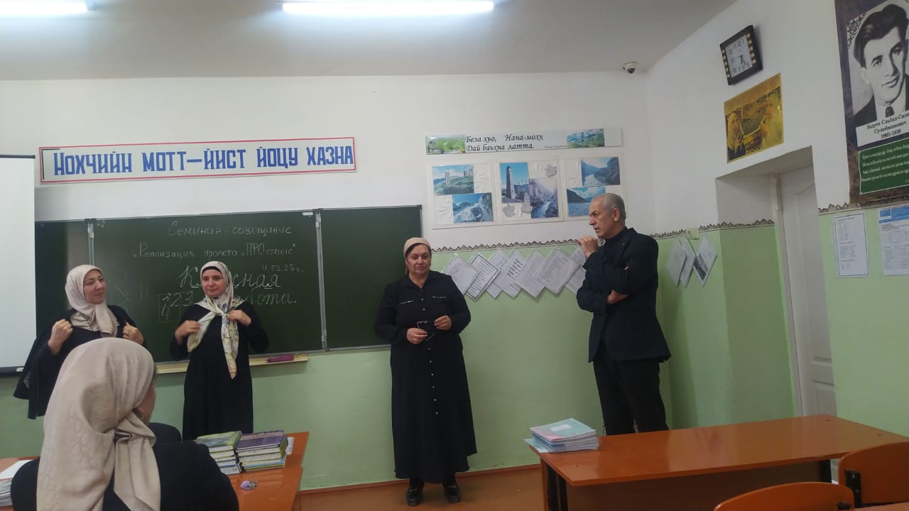 11 марта провели семинар- совещание для учителей чеченского, русского и английского языков на тему : 'Реализация проекта «ПРОчтение» в школе. Обсуждались проблемы, учителя делились с опытом работы.