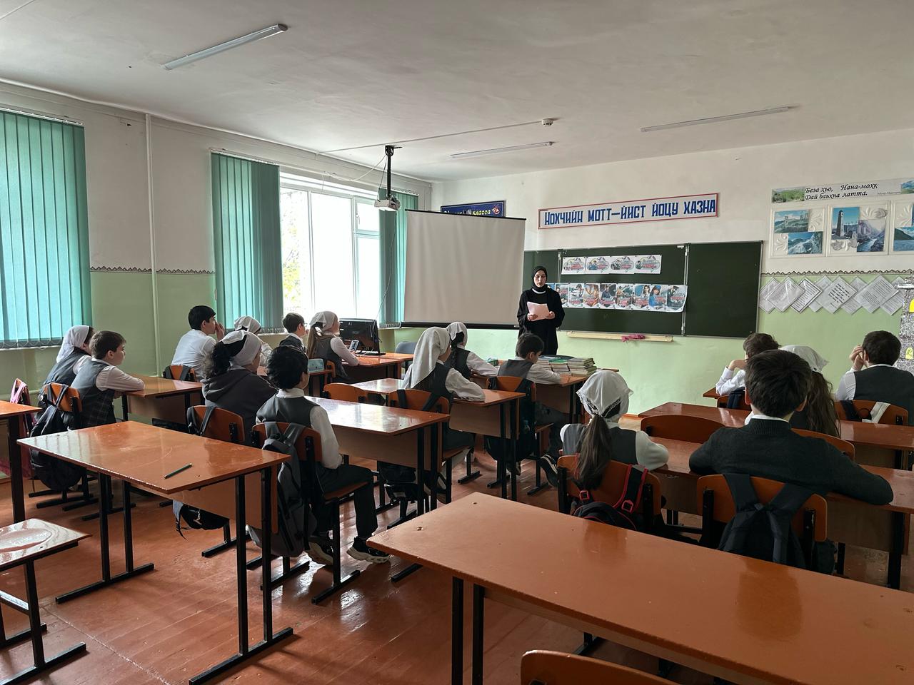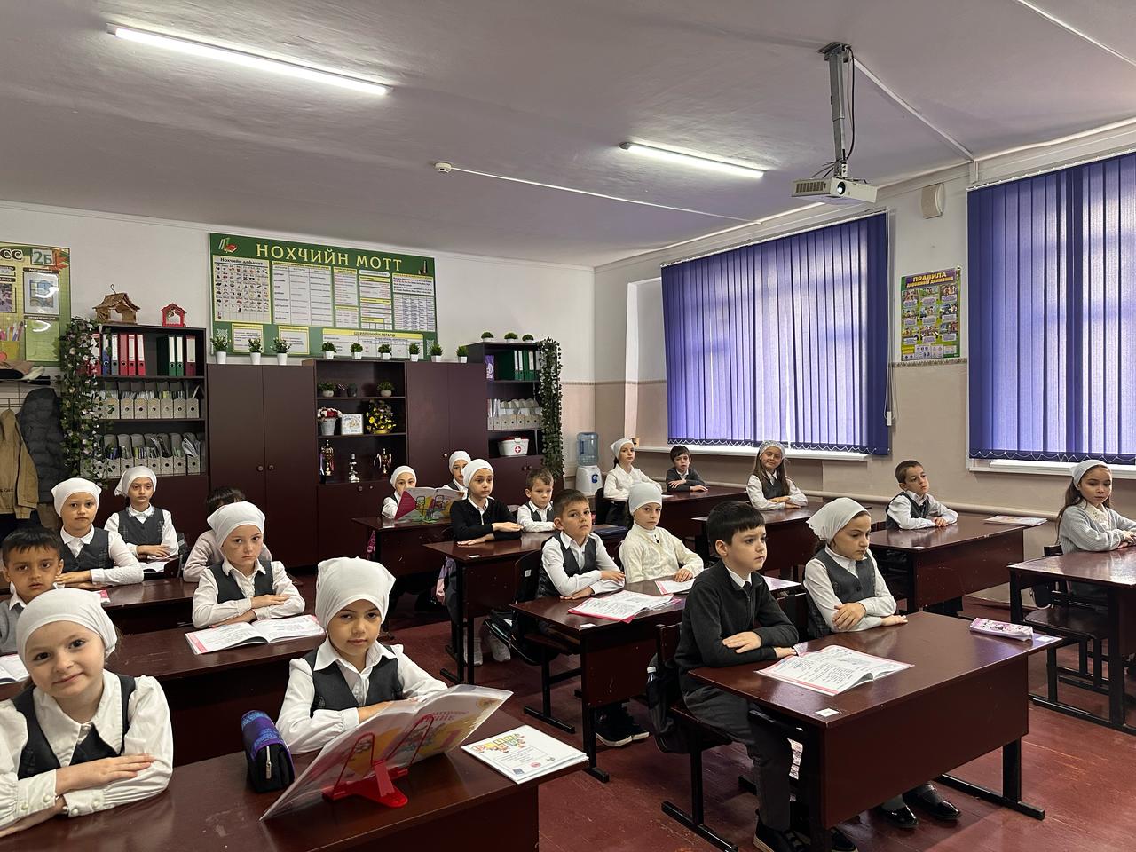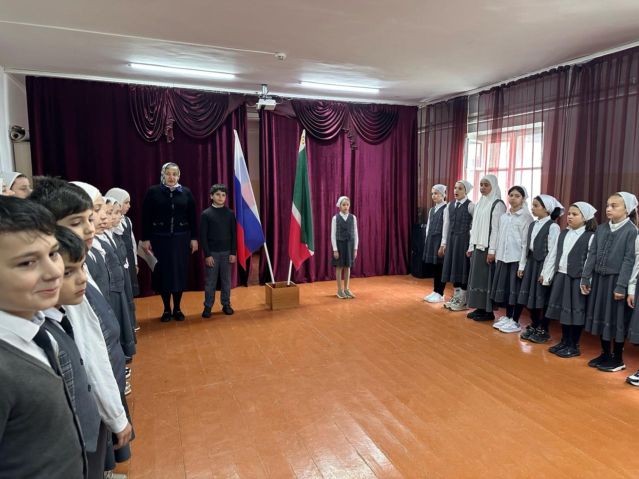 Церемония поднятия флагов и исполнения гимнов РФ и ЧР.