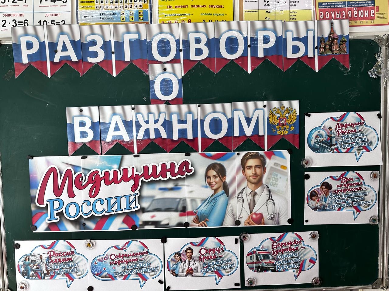21.04.2025Разговоры о важном "Медицина России"Цели занятия: формирование у обучающихся понимания значимости медицины для общества и государства, осмысление нравственной стороны работы врачей и других медицинских работников, формирование представлений о различных видахмедицинской помощи и современных достижениях российской медицины.Формирующиеся ценности: историческая память и преемственность поколений, милосердие.Основные смыслы:* Медицина – залог сохранения здоровья и обеспечения будущего нации.* Развитие медицины – один из приоритетов государственной политики Российской Федерации. Система здравоохранения нашей страны – самая доступная, человекоориентированная, интенсивно развивающаяся.* Российская медицина сегодня – это квалифицированные специалисты, доступные медицинские услуги, современное оборудование и высокий уровень заботы о населении.* Профессия врача – это служение людям, гуманизм, милосердие, огромный труд и ответственность