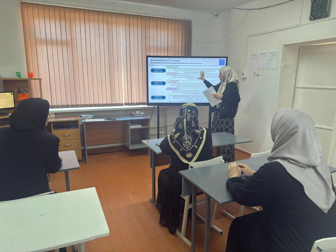 18.11.2025В МБОУ"COШ №3 ст.Ассиновская»состоялся методический семинар для педагогического коллектива, посвященный реализацииМежведомственного стандарта антинаркотической профилактической деятельности.Мероприятие провели педагог-психолог Тахингова М.С. и заместитель директора по воспитательной работеМочаева М.Я. В ходе семинара специалисты осветили ключевые аспекты стандарта, уделив особое внимание возрастным особенностям профилактической работы.Были подробно разобраны методические рекомендации и практические инструменты для двух целевых групп: детей младшего школьного возраста (7-11 лет) и подростков (12-16 лет). Участники семинара получили чёткое представление о том, как эффективно выстраивать профилактическую работу в каждой из возрастных категорий.