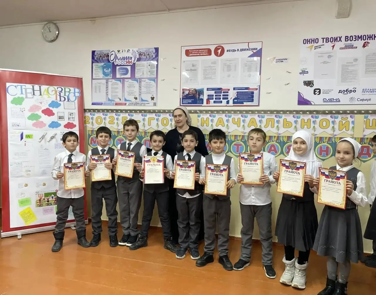 12.12.2025Закрытие метапредметной недели «Презентуй!» Приурочено: к Году начальной школы в Чеченской Республике. Ответственный: заместитель директора по УР — Чигаева Л. М. Проведённые мероприятия: «Фестиваль открытий» (ярмарка проектов) — учащиеся представили свои проекты, продемонстрировав результаты недельной работы. «Церемония награждения» — состоялось торжественное вручение грамот и дипломов самым активным классам. «Стена отзывов» — дети поделились своими впечатлениями в формате коротких высказываний: «Я узнал…», «Я научился…». Участники: учащиеся 1–4 классов, классные руководители (Хациева З. Х., Гайдамурова Х. Р., Махаури А. Р. и др.), администрация школы. Достигнутые результаты: дети научились презентовать результаты своего труда; развили навыки аргументации и самооценки; укрепили командный дух и мотивацию к обучению; закрепили ключевые знания и умения, полученные в ходе метапредметной недели. Итоги: день прошёл ярко и продуктивно, стал логическим завершением насыщенной недели. Учащиеся с гордостью демонстрировали свои достижения, а церемония награждения добавила мероприятию торжественности. # годначальнойшколы ЧР # метапредметнаянеделяЧР