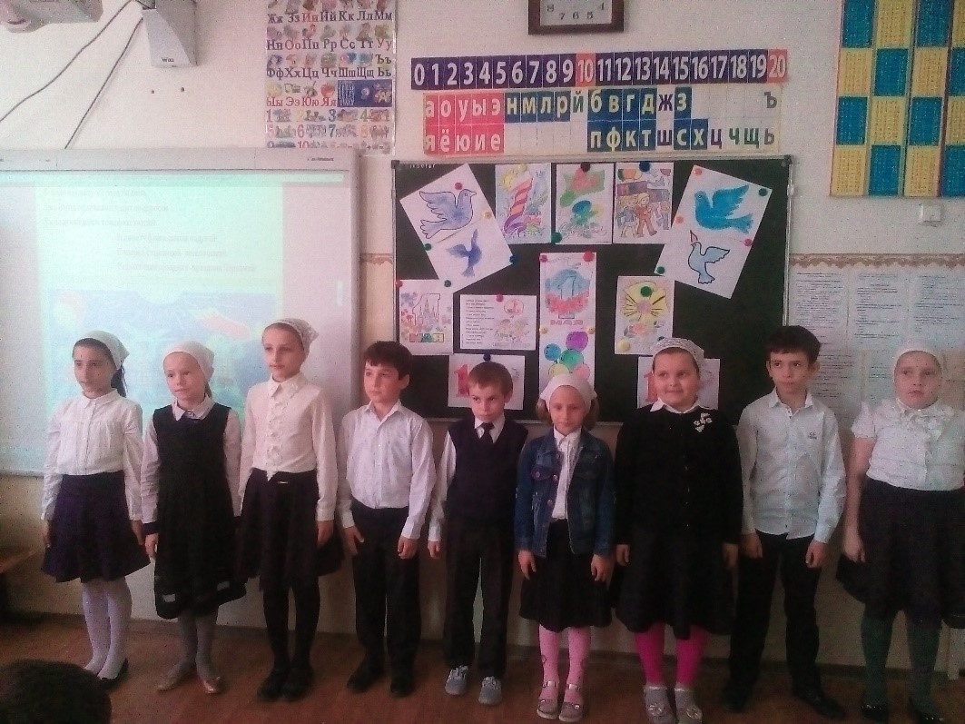 Был подготовлен и проведен конкурс чтецов «Весна –прекрасное время года», среди учеников 5-9 классов. Учащиеся показали хорошую подготовку, были прочитаны наизусть произведения великих писателей и поэтов России. Жюри отобрало и отметило лучших чтецов: 1 место- Мачукаева М (10 А класс), 2 место- Читаев Магомед (5Б класс), 3 место- Махаури Д (7А класс). Очень весело и интересно прошел концерт.( 26.04.2018г) Участники исполнили песни на различную тематику: о дружбе, семье, школе и о Родине. Все дети были отмечены грамотами и призами.